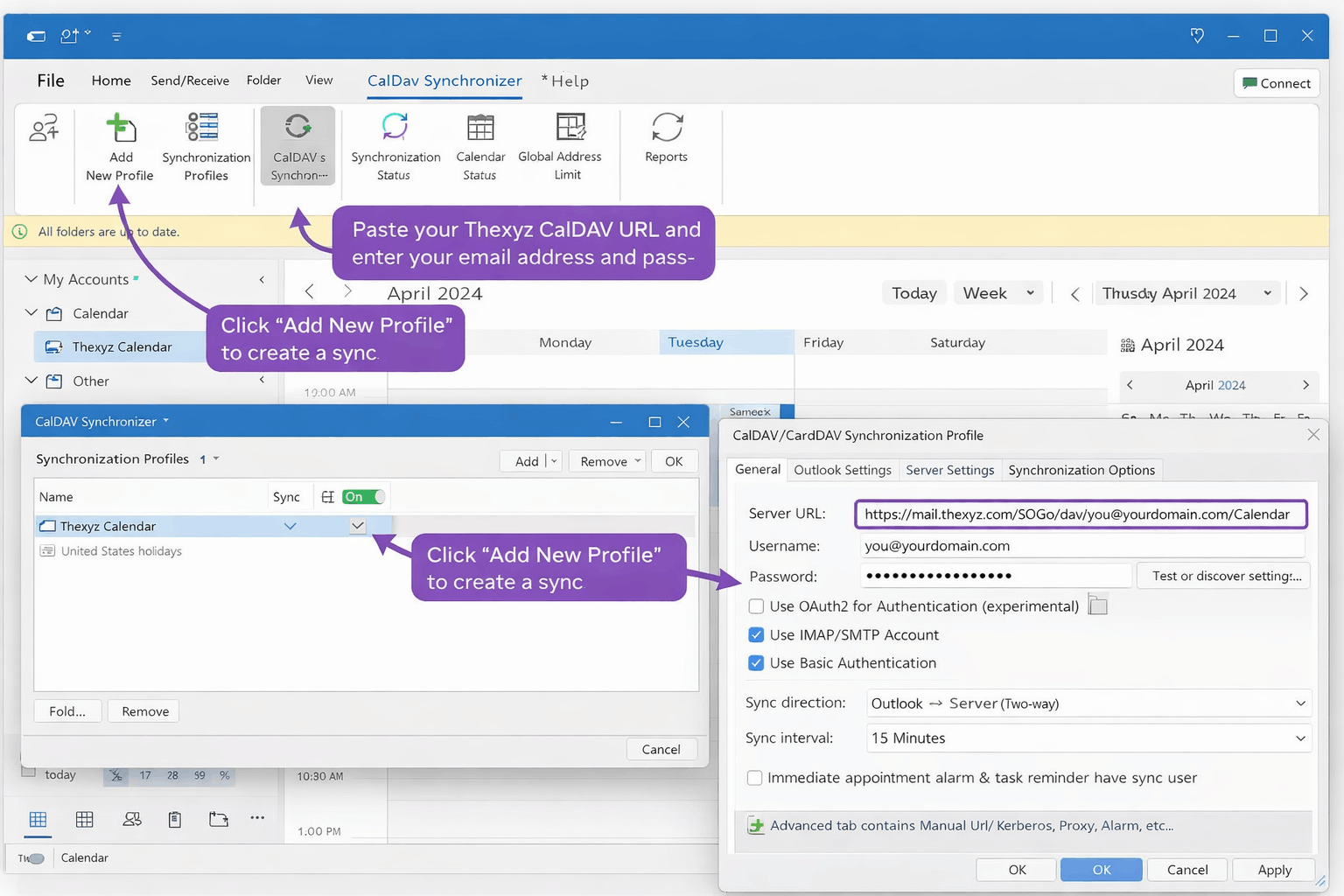 Microsoft Outlook does not natively support CalDAV calendars. To keep your Thexyz Email calendar synced with Outlook, you can use Outlook CalDAV Synchronizer — a free, open-source plugin that provides reliable two-way calendar synchronization.